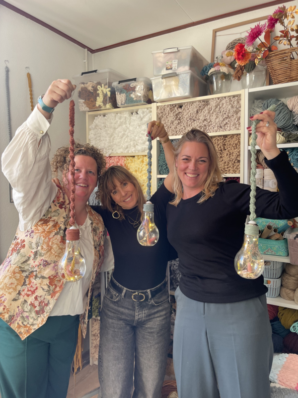 OverzichtTijdens deze macrame workshop kies je eerst een kleur voor het koord van jouw licht Peertje. Lies neemt je mee in het proces van knopen met macrame, waarbij ze stap voor stap instructies geeft. Je knoopt een prachtig koord waaraan je jouw lampje kunt ophangen. Het Peertje werkt op batterijen waardoor het eenvoudig op verschillende plekken in huis of in de tuin geplaatst of gehangen kan worden. Zowel in de zomer als in de winter een echte eyecatcher voor jouw interieur. Indien gewenst, kun je het Peertje versieren met droogbloemen, kerst-, en herfstdecoratie, of mooie schelpen. Aan het einde van de sessie ga je natuurlijk naar huis met jouw unieke zelfgemaakte Peertje.