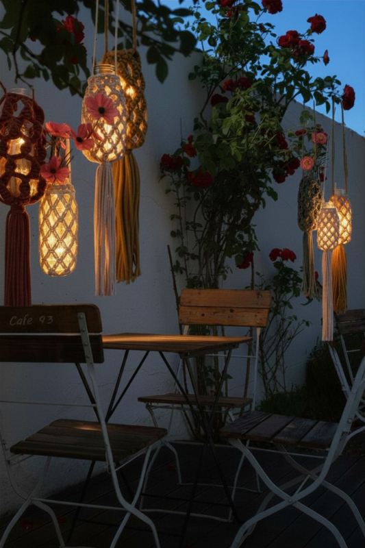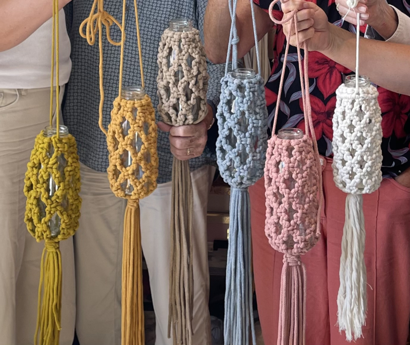 OverzichtKom in zomerse sferen met deze creatieve workshop van Druiventuintje. Je maakt een sfeervol lampionvaasje van macrame, perfect voor onder de boom in je tuin met een lampje of op je balkon of voor het raam met een mooie bloem erin. Geef je tuin, balkon of veranda een vrolijke uitstraling met deze kleurrijke vaasjes. Lies leert je de mooie macrame knopen te maken met gerecycled katoen. Je kunt dus naderhand ook thuis aan de slag met oude vazen of glazen potten die je nog hebt staan. Zo tover je jouw (buiten)ruimte om tot een levendige en gezellige oase vol kleur en creativiteit. Tijdens de warme zomerdagen wordt de workshop op het zonnige terras van de studio gegeven.